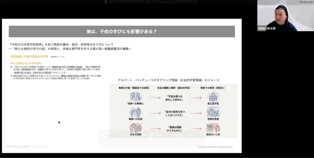2026年1月29日(木)、オンラインセミナー「『探究学習』のあり方を、『教職員』の組織開発視点で捉える ─教職員『集団』から教職員『組織』への変容を考える─」を開催しました。