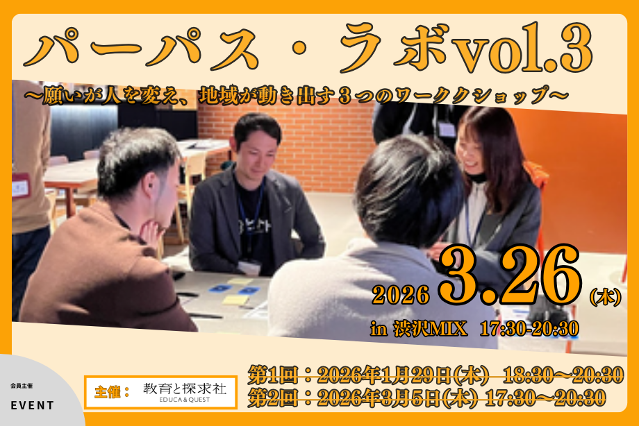 ▼ 「願い」に立ち返ることで学びと実践が動き出す―パーパス・ラボ vol.1 開催レポート:https://eduq.jp/news/purposelab-vol1-report/