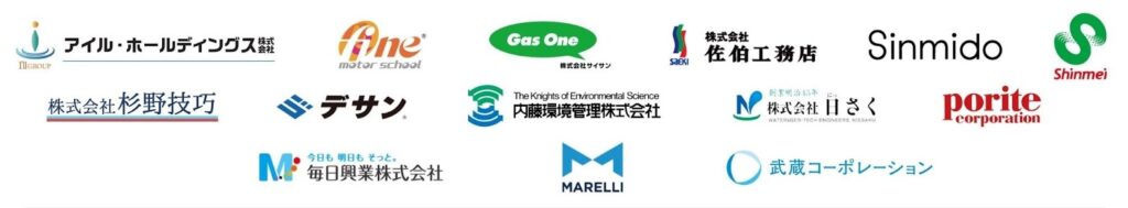 アイル・ホールディングス、臼田(ファインモータースクール)、サイサン、佐伯工務店、シンミドウ、新明ホールディングス、杉野技巧、デサン、内藤環境管理、日さく、ポーライト、毎日興業、マレリ、武蔵コーポレーション
