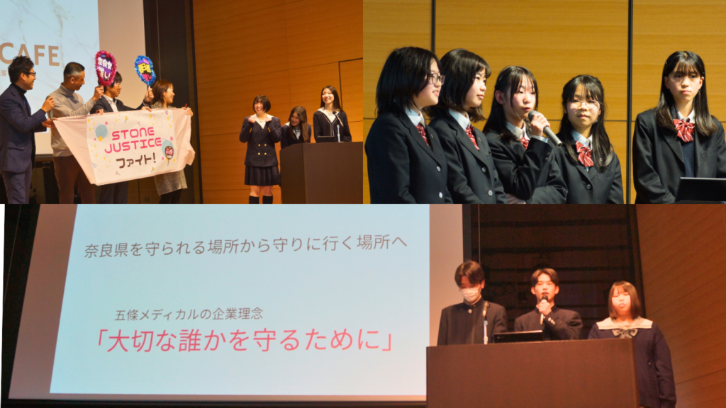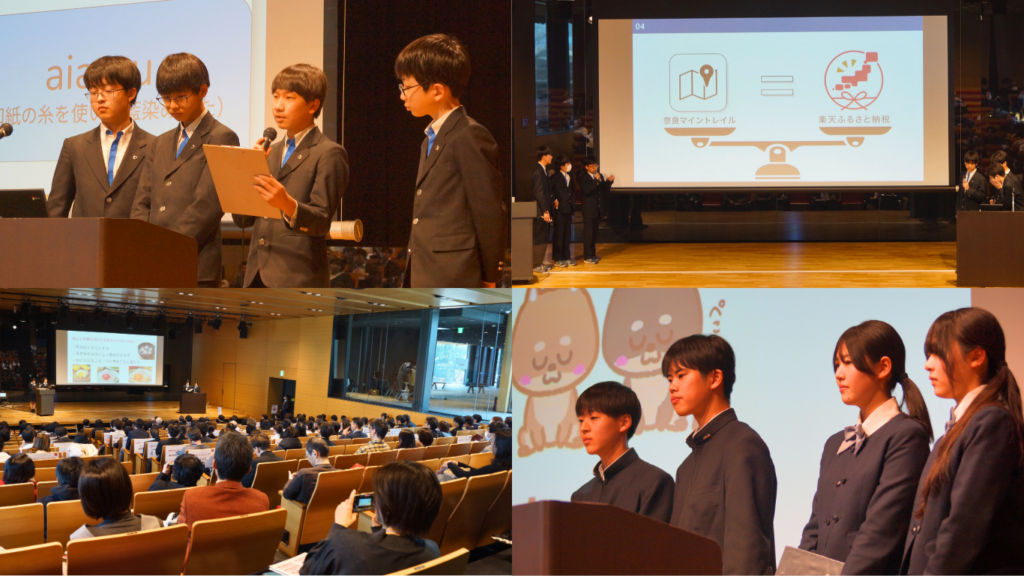 プレゼンテーションでは、奈良の伝統、食、観光、自然といった多彩な切り口から奈良の可能性を描いた提案が次々と披露されました。担当企業からの熱い応援メッセージを受けながら、自分たちの描く奈良の未来を堂々と発信する生徒たちの姿が印象的でした。
